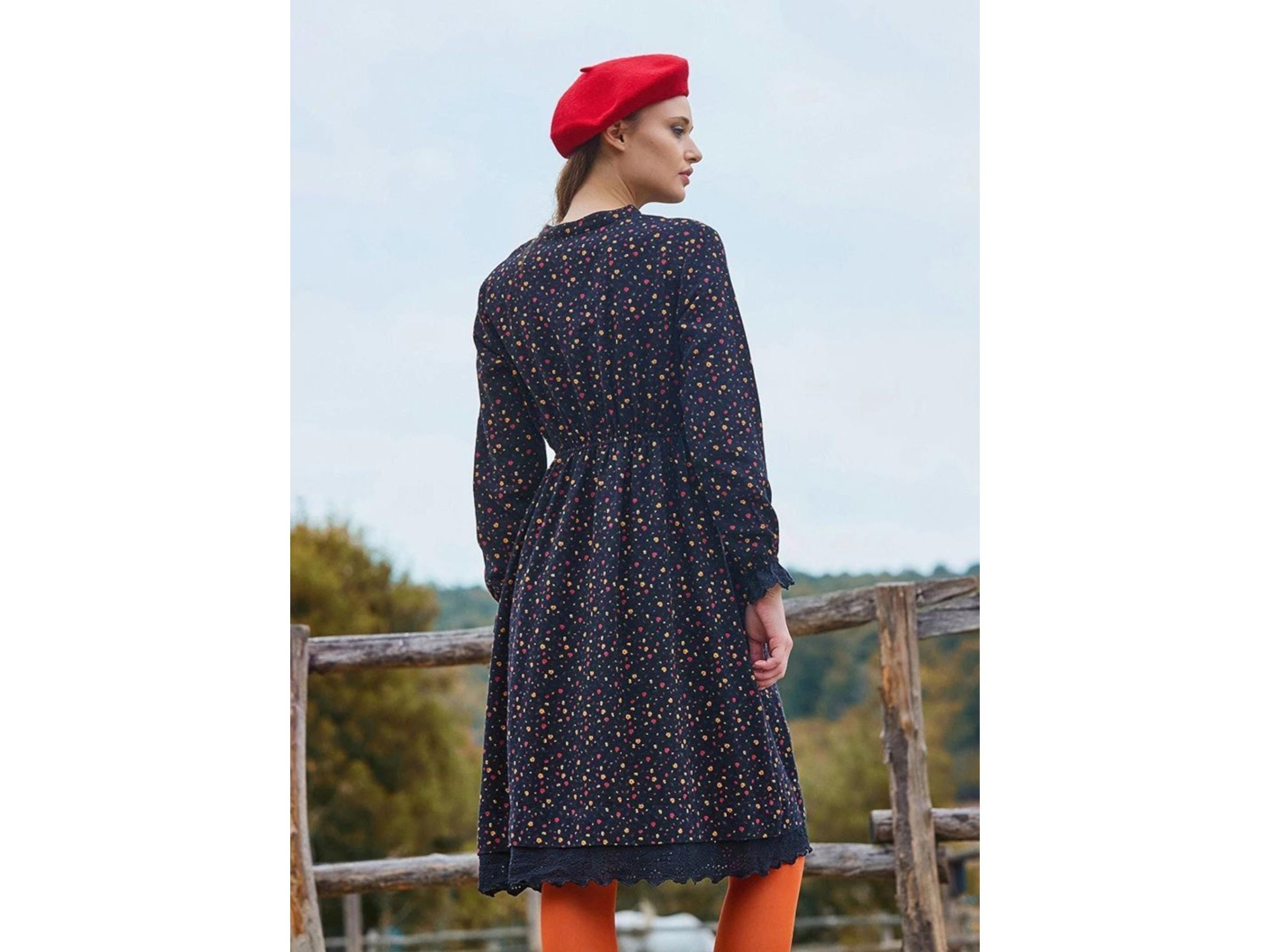 Made from 100% woven cotton, this dress is breathable, skin-friendly, and free from polyester â keeping you warm yet comfortable throughout the winter season.
